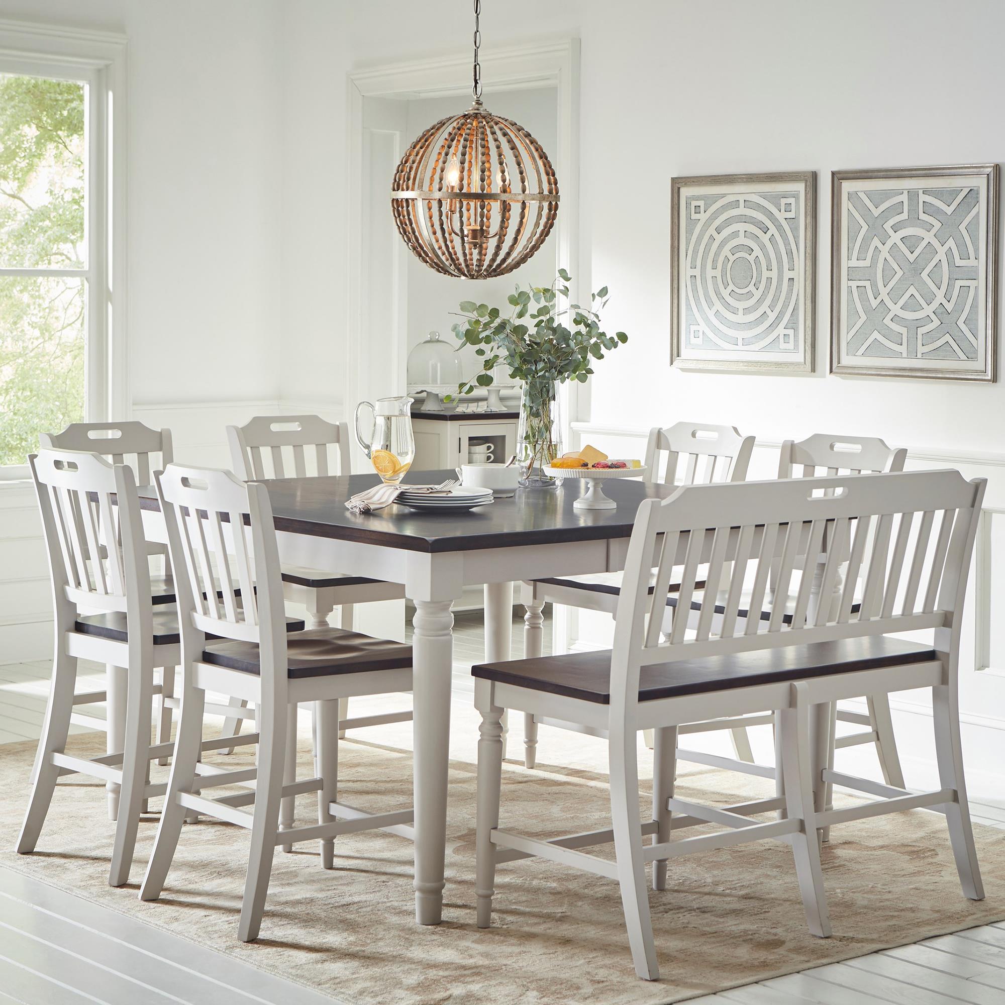 Waltham Orchard Park 6 Piece Counter Height Dining Set With Bench In Dark Brown And Soft Gray Nebraska Furniture Mart
